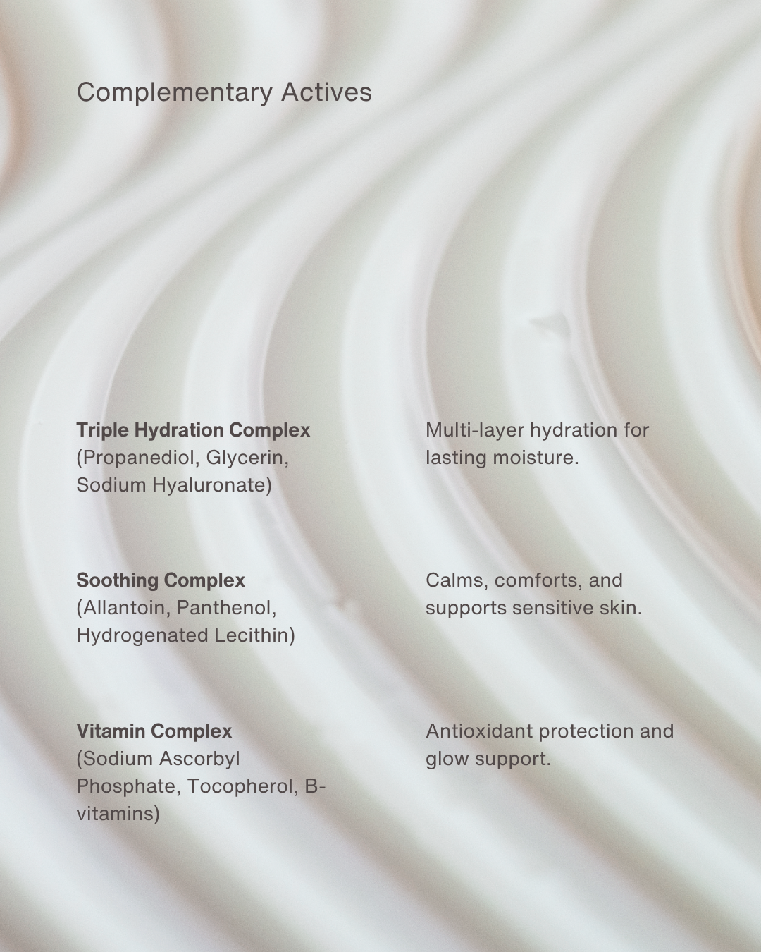 These deeply hydrating ingredients deliver moisture across multiple layers of the skin, leaving it plump, soft, and replenished. They help retain water in the skin barrier, making your glow last all day without dryness or tightness.