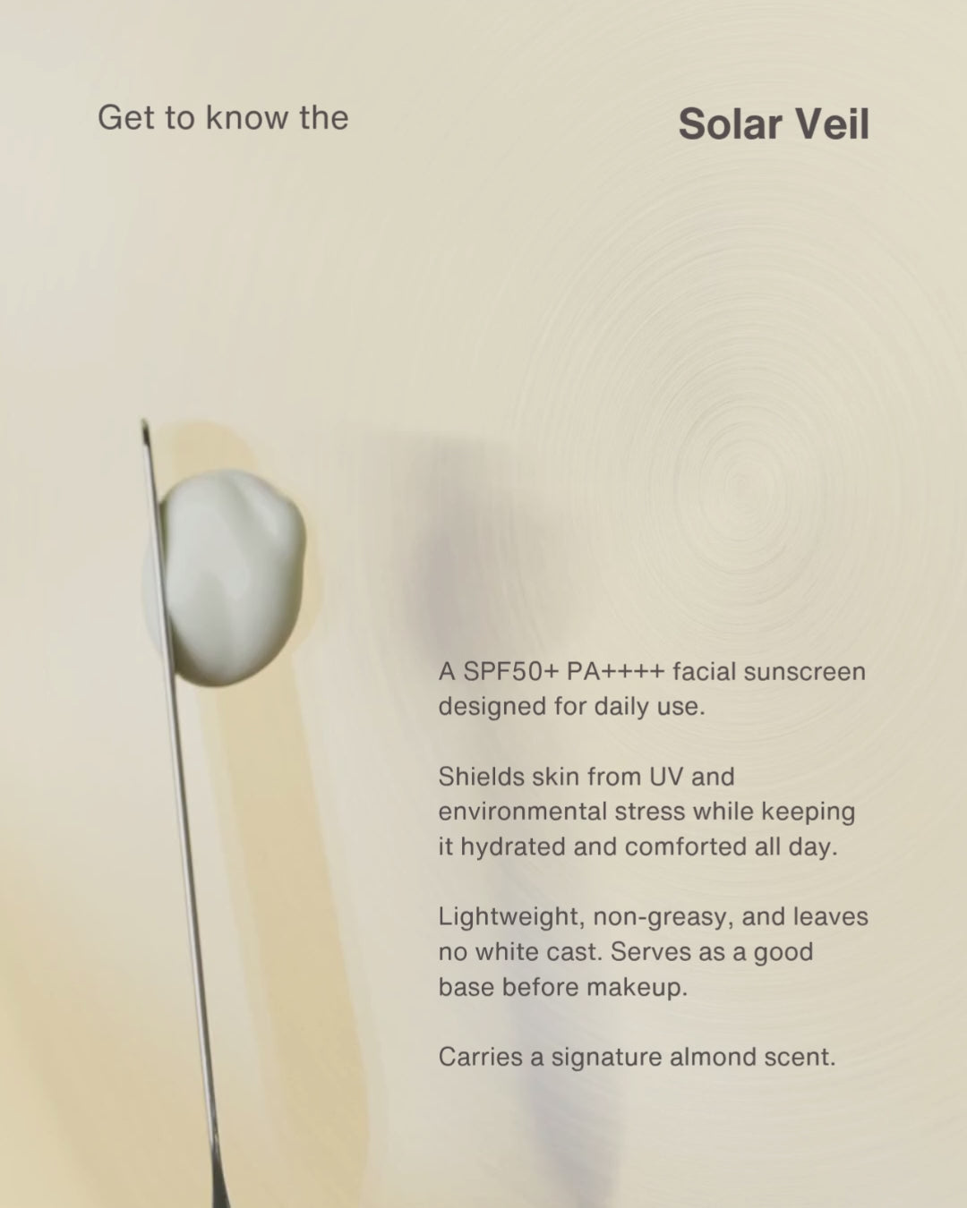 Calm and comfort your skin with this blend of soothing agents. Allantoin and Panthenol help reduce redness and irritation, while Hydrogenated Lecithin supports the skin barrier, making the Solar Veil gentle enough for daily use, even on sensitive skin.
